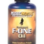 F-ONE le devuelve la vida a la madera. F-ONE es formulado usando una compleja mezcla de los mejores aceites refinados de árboles y semillas para limpiar, acondicionar y proteger tu diapasón con o sin trastes. 100% libre de cualquier extracto de aceite de limón, ceras, destilados de petróleo, silicona y agua. Elegimos no utilizar ningún aceite de limón porque contiene d-limoneno, que es un fuerte solvente utilizado para remover pintura y pegamento. Además, creemos que los altos niveles de acidez del aceite de limón pueden con el tiempo secar tu diapasón y requieren un cuidado más frecuente en el diapasón. F-ONE le da un nuevo look a tu diapasón con una nueva y gran sensación, no pegajoso. Nuestra revolucionaria fórmula revolucionaria penetra y condiciona la madera para secarla rápidamente y darle un aspecto nuevo durante meses. Utilizamos aceites 100% naturales y es seguro en todos los diapasones de palo de rosa, ébano y maple. El aceite F-ONE es el preferido por los talleres de servicio más respetados en el mundo.