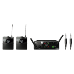 El WMS40 Mini Dual Instrumental Set es una verdadera solución inalámbrica plug-n-play que proporciona un sonido de audio nítido. Cada uno de los dos mini transmisores de bolsillo PT40 incluidos proporciona un conector mini XLR profesional de 3 pines, compatible con todas las guitarras, bajos y MicroMics de AKG, desde la línea hasta el nivel del micrófono. La duración de la batería extremadamente larga de 30 horas con una sola batería AA ahorra dinero en el uso diario. El receptor ofrece dos salidas balanceadas a través de conectores jack de 1/4 “.