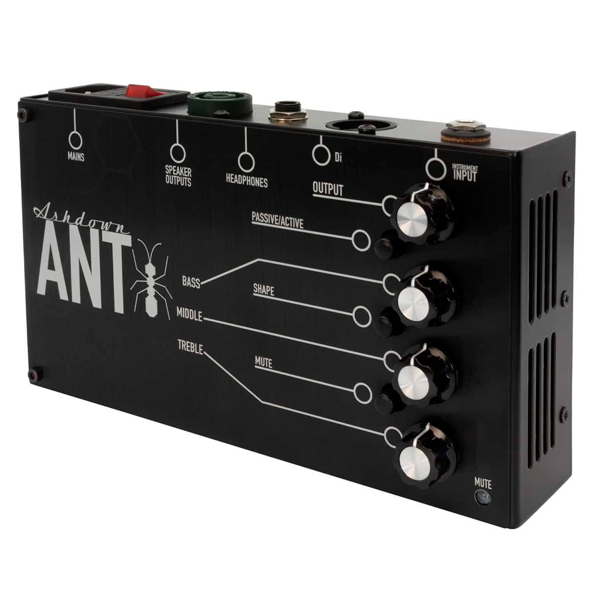 ANT es un amplificador revolucionario de pedalera para bajo que ofrece 200 watts de tono grave puro Ashdown en cualquier gabinete de altavoces de 4 u 8 ohms. Ligero, súper compacto y construido para el uso rudo. Usar ANT te brindará una potencia y tono Ashdown confiables en cada presentación, eliminando la incertidumbre que pueden traer los amplificadores de backline. ANT también ajusta automáticamente tu requerimiento de energía de 100V a 240V para que puedas simplemente conectar y usar sin importar en qué país estés realizando tu show, ANT se encargará de todo. Diseñado para bajistas que usan pedales, modeladores y procesadores de efectos para crear tu tono, pero también se puede usar totalmente sólo con el ecualizador de tres bandas más el preajuste de forma que permite esculpir fácilmente el tono. La salida XLR DI balanceada también te permite correr directamente al PA y transmitir tu tono directamente a al escritorio de sonido. Por último, la salida de audífonos permite la práctica silenciosa entre conciertos.