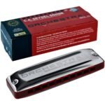 Armónica diatónica con solo-tuned con cañas de acero inoxidable libres de corrosión (afinación orquestal), cubiertas ergonómicas y peine de plástico rojo carmín. El modelo Orchestra-S es una armónica solo-tuned de 10 agujeros. Al igual que con las armónicas cromáticas, todas las notas de la escala mayor están disponibles en un rango de 2 octavas y media. El modelo Orchestra-S ofrece aún más. Por lo general, la nota fundamental se encuentra en el agujero 1. La Orchestra-S coloca la nota fundamental en el agujero 3 y se añade la mitad de la octava grave a los agujeros 1 y 2. Dado que muchos músicos no pueden tocar algunas de las notas de la armónica diatónica estándar con afinación Richter en el registro grave, la Orchestra-S les permite alcanzar las notas que faltan sin tener que aplicar una nota sin tener que aplicar la técnica de bending. La nota fundamental de la escala mayor diatónica está marcada en la cubierta. Esto hace que la Orchestra-S sea un instrumento ideal para solistas: su diseño de 10 agujeros hace que sea lo suficientemente compacta para tocar tus melodías en cualquier lugar. La estructura de las notas es básicamente la misma que la de una armónica cromática, haciendo que la Orchestra-S sea una gran armónica para aprender a tocar una amónica cromática. El tamaño compacto combinado con la durabilidad de Seydel, hace que el modelo Orchestra-S sea una buena opción para la educación musical en las escuelas. El modelo Orchestra-S ofrece nuevas posibilidades a los armonicistas de blues haciendo sencillo tocar piezas en menores (3era posición) con un sonido similar a solos en una armónica cromática, gracias a su afinación solo-tuned. Ellos también aprecian la escala mayor extendida en el registro inferior. La nota fundamental en el acorde dominante está disponible en el agujero 1, haciéndolo similar a tocar en la segunda posición en una armónica estándar con afinación Richter. Los músicos de blues experimentados encontrarán todas las notas de la escala de blues a través de notas naturales y bendings, brindando alma y color a tus improvisaciones de blues. Puedes también echar un vistazo a nuestro tutorial detallado con muchos ejemplos de sonido.