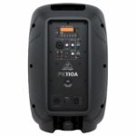 Bafle activo de 320W para aplicaciones de refuerzo sonoro, altavoz de 10″ pulgadas y driver de compresión de 1″ pulgada, amplificador Clase AB, reproductor multimedia integrado, bluetooth, mezcladora de 2 canales, entrada USB y entrada para tarjeta SD de hasta 32 GB, entrada XLR para micrófono, ecualizador de 2 bandas, respuesta de frecuencia (-10 dB): 20 Hz a 20 kHz, SPL máximo: 90 dB, dimensiones: 545 x 355 x 295 mm, peso: 8.9 kg.