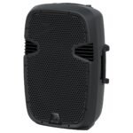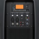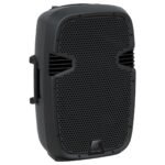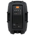 Bafle activo de 600W para aplicaciones de refuerzo sonoro, altavoz de 12″ pulgadas y driver de compresión de 1″ pulgada, amplificador Clase AB, reproductor multimedia integrado, bluetooth, mezcladora de 2 canales, entrada USB y entrada para tarjeta SD de hasta 32 GB, entrada XLR para micrófono, ecualizador de 2 bandas, respuesta de frecuencia (-10 dB): 20 Hz a 20 kHz, SPL máximo: 95 dB, dimensiones: 341 x 420 x 635 mm, peso: 12.5 kg.