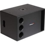 Subwoofer pasivo bandpass con woofer de 10″ pulgadas con 2 VC de 2.5″ pulgadas para un alto nivel de rendimiento y graves potentes, potencia continua: 250 watts, pico: 500 watts, SPL máximo: 122 dB, respuesta de frecuencia: 46 Hz – 160 Hz, gabinete de madera contrachapada con una agarradera, dimensiones: 520 x 330 x 350 mm, peso: 17 kg.