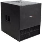 Subwoofer pasivo bandpass, impedancia: 8 ohms, potencia continua: 1000 watts, potencia máxima: 2000 watts, respuesta de frecuencia: 34 Hz – 170 Hz (sin filtro), sensibilidad: 98 dB, gabinete de madera contrachapada de haya de 18 mm, peso: 45 kg.