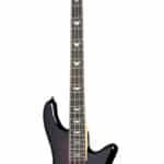 Bajo eléctrico de 4 cuerdas, cuerpo de caoba, tapa plana de maple acolchado, brazo C delgado de maple, diapasón de palo de rosa, unión de una capa de Creme, incrustaciones: pearloid y vector abalone, escala 34” (863 mm), 24 trastes x-jumbo, cejuela de Graph Tech XL Black Tusq de 1.496” (38 mm) de ancho, alma de 2 vías ajustable con tuerca Allen de 5/32” (4 mm), pastilla del puente: Schecter Diamond Bass, pastilla del brazo: Schecter Diamond Bass, volumen master, blend y ecualizador activo de 2 bandas, compartimento de la batería: 9V, hardware cromado negro, puente: Diamond Bass, maquinaria Schecter, perillas de metal moleteado con tornillo de ajuste, construcción bolt-on.