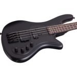 Bajo eléctrico activo de 4 cuerdas, cuerpo de tilo con tapa plana, hardware negro, construcción: Bolt-on, puente S-Tek, maquinaria Schecter, brazo C delgado de maple, diapasón de palo de rosa de 16” (406 mm) de radio, incrustaciones: puntos en gris aperlado, escala: 34” (863 mm), 24 trastes X-Jumbo, cejuela de Graph Tech XL Black Tusq de 1.496” (38 mm) de ancho, alma ajustable de 2 vías con tuerca Allen de 5/32” (4 mm), volumen master, blend y ecualizador activo de 2 bandas, pastilla del puente: Schecter Diamond SuperRock MM, pastilla del brazo: Schecter Diamond P, compartimento de la batería: 9V Clip-in, perillas de metal moleteado con tornillo de ajuste.