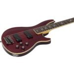 Bajo eléctrico sólido de 5 cuerdas, cuerpo de caoba, tapa arqueada de maple flameado, construcción Bolt on, puente Diamond Bass, brazo C delgado de maple, diapasón de palo de rosa, 24 trastes X-Jumbo, maquinaria Schecter, alma ajustable de 2 vías, pastilla del puente: Schecter Diamond Bass, pastilla del brazo: Schecter Diamond Bass, control de volumen, compartimento de batería 9V, hardware cromo negro, perillas de metal moleteado con tornillo de ajuste.
