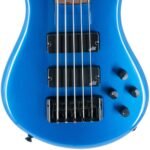 Bajo eléctrico activo de 5 cuerdas, tapa de alder en color Metallic Blue y tapa de maple figurado en color Tobacco Sunburst, cuerpo de alder europeo ligero, brazo de 3 piezas de maple tostado, diapasón de maple tostado, 24 trastes, incrustaciones de corona de madreperla, cejuela de grafito de 1.81″ de ancho, escala: 35″, pastillas Aguilar DCB G4, configuración: 2 humbuckers, sistema de preamp: Aguilar OBP-2, controles: Volumen del brazo, Volumen del puente, Bass Cut/Boost, Treble Cut/Boost, espaciado entre las cuerdas: .75″, radio: 16″, hardware negro, puente de aluminio locking, maquinaria Gotoh GB-707, cuerdas: D’Addario XL-170-5.