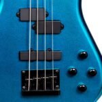 Bajo eléctrico de 4 cuerdas, cuerpo clásico de nato tipo NS, brazo de 3 piezas de maple, construcción bolt-on, 24 trastes, diapasón de amara, set de pastillas P/J pasivas patentadas, incrustaciones: puntos blancos, escala: 34”, cejuela de grafito de 1.57” pulgadas de ancho, 2 volúmenes y 2 tonos, hardware negro. Dimensiones del producto: 10.5 x 45 x 122 cm. Peso: 4.68 Kg.
