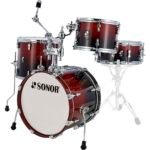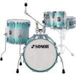 Batería acústica serie AQ2 Bop Set, fabricada con 7 capas de maple, incluye bombo de 18″ x 14″ con tom/cymbal holder, tarola de 14″ x 6″, tom de aire de 12″ x 8″ y tom de piso de 14″ x 13″, no incluye atriles ni platillos.