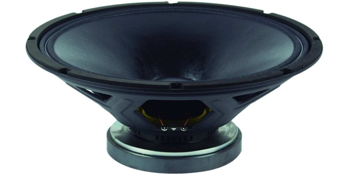 Altavoz de 15″ pulgadas, impedancia: 8 ohms, potencia AES: 350 watts, potencia programa: 700 watts, sensibilidad: 97 dB, rango de frecuencia: 40 – 4,000 Hz, bobina móvil: 3”, peso: 6 kg, imán: ferrita.