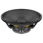 Bocina de 15” pulgadas (380 mm) de rango medio, potencia programa de 800W, impedancia: 8 ohms, rango de frecuencia: 50 – 3000, bobina móvil: 3″ pulgadas, chasis de aluminio, imán de ferrita, bobina de CCAW, cono de papel tratado a prueba de agua, bobinador de fibra de vidrio, envolvente de poli-algodón, motor y suspensiones optimizados FEM, sistema optimizado de ventilación, diseño de canasta sin resonancias y resistente, envolvente de triple rollo.