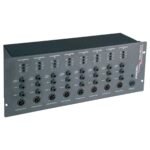 Caja directa Proel. Modelo: DBA-8CH. 8 canales. Cuatro unidades de rack. Entradas: 8 jack mono hembra. Salidas: 8 XLR de 3 pines, 8 jack 1/4″ desbalanceado, 8 link jack 1/4″. Impedancia de salida: 330 ohms (balanceado) – 2200 ohms (desbalanceado). Respuesta de frecuencia: 20 Hz – 20 kHz. THD: <0.025% (ganancia 0 dB) 96 dB (ganancia 0 dB) >82 dB(20 dB de ganancia). Peso: 3.75 Kg.