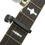 Capo NS Trio de Planet Waves, fabricado en aluminio de calidad de aviación y diseñado para usar en banjos, mandolinas y para afinaciones descendentes en guitarras, brazo superior más corto y brazo inferior extendido, lo que permite la aplicación parcial del capo en guitarras de 6 o 12 cuerdas.