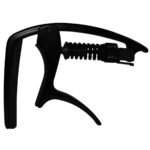 El capo NS Tri-Action en color negro garantiza una ejecución sin zumbidos y afinada en todos los trastes. La geometría Tri-Action con patente en trámite reduce la fuerza necesaria para abrir y cerrar el capo, y aplica tensión pareja independientemente del perfil del mástil. Combinado con el ajuste de tensión y la presión horizontal directa del micrómetro, el capo Tri-Action prácticamente elimina el estiramiento de las cuerdas de lado a lado y la necesidad de volver a afinar el instrumento durante el uso. Además, su estructura de aluminio liviano agrega muy poco peso al mástil del instrumento. El capo posee un portapúas integrado y está diseñado por Ned Steinberger.