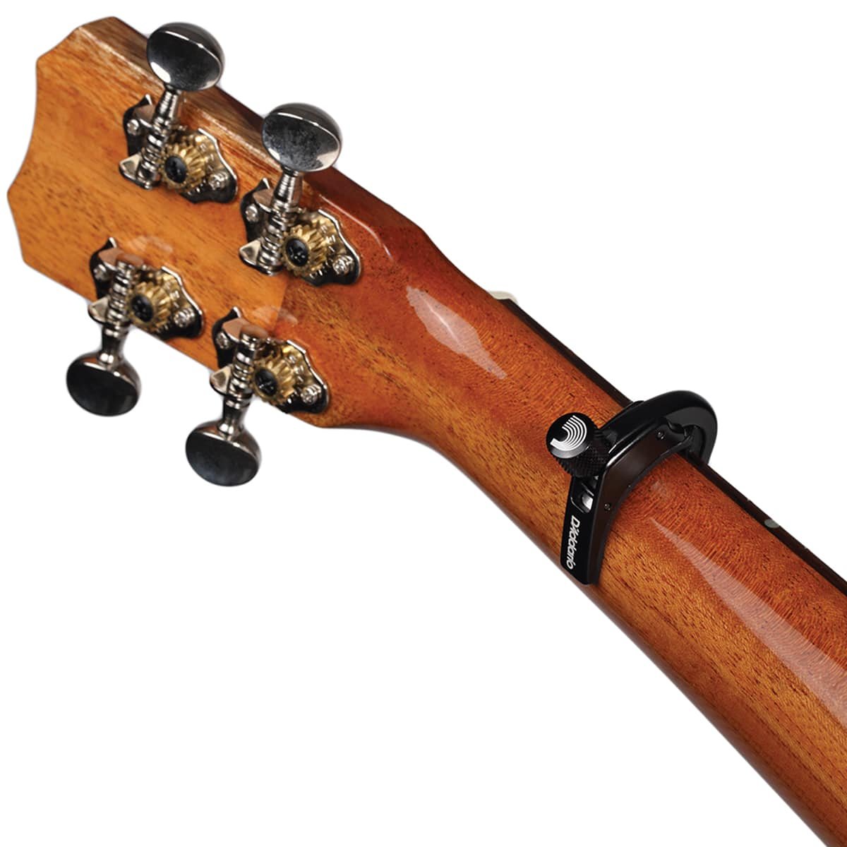 Capodastro diseñado específicamente para ukelele, diseñado para asegurar que tu instrumento esté libre de zumbidos y ofrecer un rendimiento en la afinación al momento de utilizarlo. Un mecanismo de ajuste micrométrico te permite marcar la extensión exacta que se requiere para que las notas suenen claras y sin una fuerza excesiva en cualquier posición sobre el brazo. Esto reduce en gran medida la necesidad de volver a afinar tu ukelele durante y después de utilizar el capo. La construcción en aluminio de calidad aeronáutica elegante puede soportar cualquier daño por el uso excesivo mientras tocas o vas de gira.