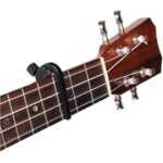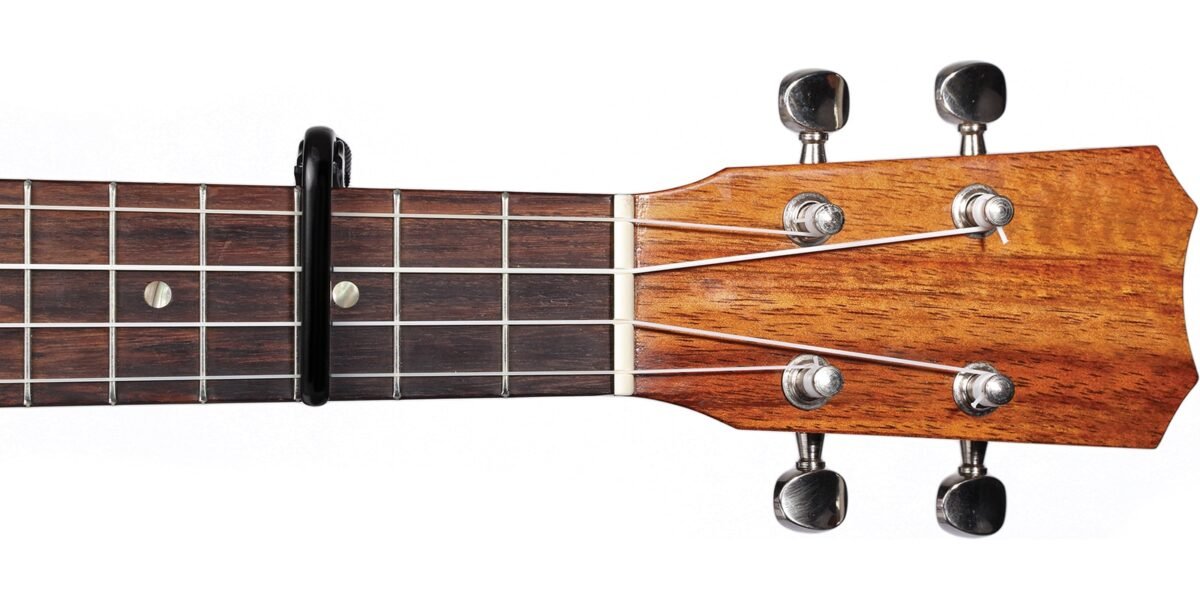 Capodastro para ukelele, ajuste de tensión micrométrica libre de zumbidos y ofrece rendimiento en la afinación de cada traste, construcción en aluminio de pesoligero.