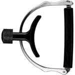 Capo tipo tornillo para guitarras eléctricas y acústicas de 6 cuerdas, diseño siempre listo con tensión uniforme gracias a la cuna autocentrable, capaz de almacenarse en la cejuela de la guitarra cuando no está en uso o en un estuche, fabricado con acero inoxidable duradero, diseñado en conjunto con Net Steinberg.