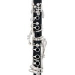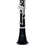 Clarinete, afinación en Bb, 17 llaves, cuerpo de ebonita, llaves plateadas, descanso de pulgar metálico, barril sencillo, con estuche ligero de lona.