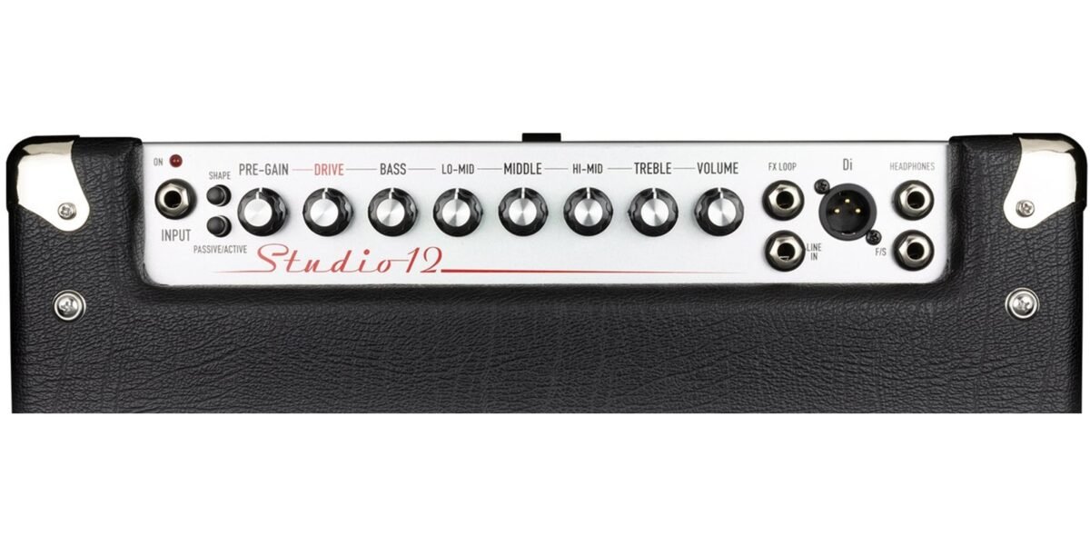 Combo para bajo, súper ligero y versátil, un altavoz Ashdown de 12” pulgadas, ecualizador de 5 bandas, Pre Shape, drive a bulbos emulado, entrada de línea, salida de audífonos, control Line Mix, switch Speaker Mute, Salida XLR DI, drive footswitchable, potencia de 100 Watts a 8 ohms, mm, peso: 10.3 kg.