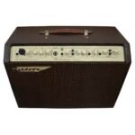 Combo para guitarra acústica, 65 watts de potencia, 2 altavoces Celestion de 8” pulgadas con horn, 2 canales, entradas para guitarra acústica y micrófonos, reverb incluido, phase reverse, salida XLR DI, alimentación phantom, filtro de eliminación de retroalimentación, entrada auxiliar para reproductores mp3, controles ecualizador de 3 bandas, volumen, notch y reverb, dimensiones: 326 x 468 x 225 mm, peso: 12 kg.