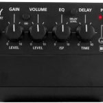 Combo mini para guitarra, 3 watts de potencia, altavoz de 3″ pulgadas, 2 canales, delay integrado, entrada auxiliar, control ISF patentado, salida para audífonos y para grabación con simulación de altavoz, alimentado por batería o por adaptador de corriente (no incluido), dimensiones: 17.5 x 13.6 x 10.7 cm, peso: 1 kg.