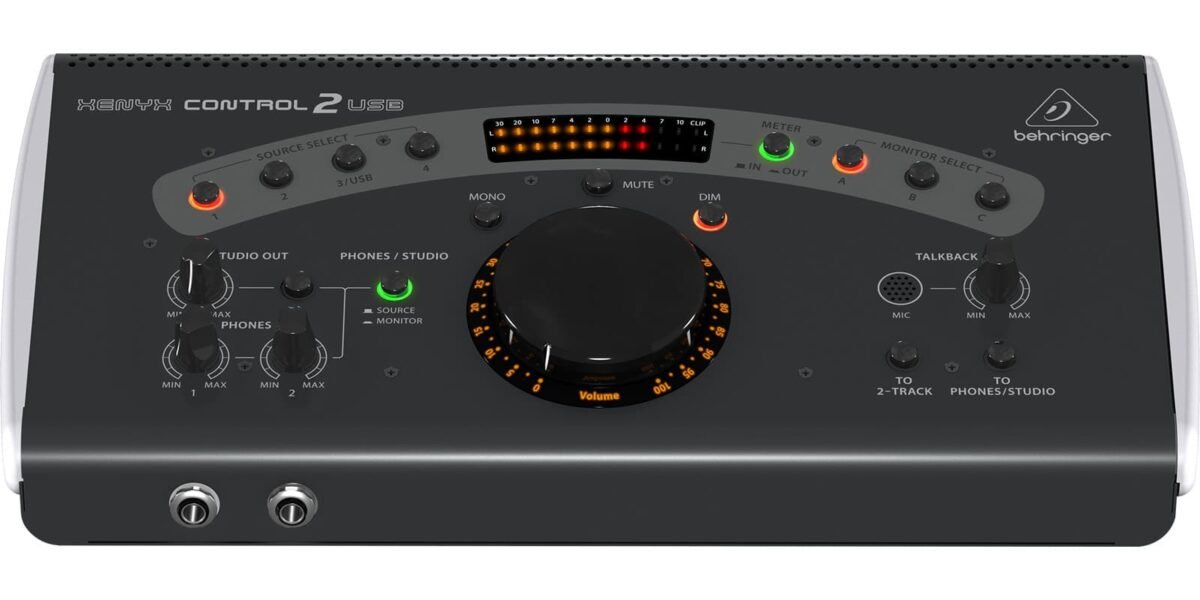 Cuando es tiempo de comenzar a grabar o a mezclar, la última cosa que querrás es arrastrarte bajo tu escritorio y correr tus cables. El ultra práctico CONTROL2USB te libera las rodillas poniendo volumen master, Talkback, selección de fuente y control de monitor a tu alcance. Ahora puedes escoger entre 3 sets de monitores activos de estudio y 4 distintas fuentes de entrada estéreo para crear potentes mezclas personalizadas de monitor. Además la entrada de micrófono Talkback te permite comunicarte directamente con el músico. El increíblemente versátil CONTROL2USB te hace el maestro de tu dominio.