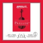 Cuerda individual Mi para violín, serie Prelude de D’Addario, escala 1/16, tensión media, apta para violines de 1/16 con una longitud de 8 1/2″ pulgadas (216 mm), acero de alto carbono estañado, núcleo de acero sólido, inalteradas por los cambios de temperatura y humedad, excelente respuesta del arco, sonido cálido durable, paquete ecológico y resistente a la corrosión para conservar la frescura de las cuerdas.