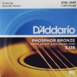 EJ38, el juego de 12 cuerdas más popular de D’Addario, ofrece el equilibrio ideal de volumen, proyección y comodidad de uso. Diseñadas para todas las marcas y modelos de guitarras acústicas de 12 cuerdas.