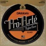 Juego de cuerdas de nylon para guitarra clásica, serie Pro-Arte, tensión blanda, contiene graves de nylon entorchado en plata y agudos de nylon transparente, agudos precisos y auténticos, entorchadas en cobre recubierto en plata sobre un núcleo de nylon de multifilamentos, tono cálido y con proyección, entonación consistente y precisa, paquete ecológico y resistente a la corrosión para conservar la frescura de las cuerdas.