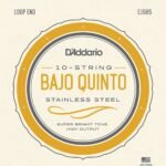 Encordadura para bajo quinto, acero inoxidable, tono súper brillante y respuesta magnética compatible con instrumentos que tienen pastillas electromagnéticas para amplificación, control de tensión loop-end, calibres: .026/.026, .036/.036, .046/.046, .062/.030, .078/.036, fabricadas en USA.