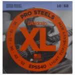 La serie XL ProSteels de D’Addario utiliza una aleación de acero resistente a la corrosión altamente magnética que proporciona un tono súper brillante sin sobretonos estridentes. Ofrecen una gama de agudos armónicamente abundantes y brillantemente penetrantes combinados con graves pronunciados, ajustados y duros. Si buscas más crujido, agarre y efecto sostenido, ProSteels es la opción para ti.
