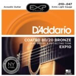 Las cuerdas EXP de D’Addario son las cuerdas recubiertas que proporcionan el sonido más natural y las de más larga duración disponibles. La tecnología de recubrimiento EXP comienza con los materiales de recubrimiento de cuerdas de la más alta calidad, estirados con precisión y microrrecubiertos en nuestra maquinaria patentada de avanzada. Luego, las cuerdas se entorchan normalmente para proporcionar un tono y una sensación idénticos a los de las cuerdas para guitarra acústica mundialmente reconocidas de D’Addario, con una vida útil mínima cuatro veces superior. ¡No podrás creer que estén recubiertas!