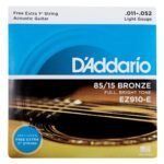 La EZ-910 es una encordadura de bronce 85/15 de calibres .011- .052 para guitarra acústica. El núcleo es de acero hexagonal al alto carbón, entorchadas con una aleación de bronce 85/15 mejor conocida como American Bronze, lo que les da un sonido acústico muy brillante, rico y a la vez profundo con gran proyección, además de gran durabilidad y excelente entonación.
