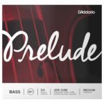 Juego de cuerdas para contrabajo, serie Prelude de D’Addario, escala 3/4, tensión media, aptas para contrabajos de 3/4 con una longitud de 41 3/4″ pulgadas (1060 mm), núcleo de acero multitrenzado, calidad de tono cálido, buena respuesta del arco, ideales para utilizar en entornos educativos, sonido claro y cálido que se combina bien en todo el encordado, paquete ecológico y resistente a la corrosión para conservar la frescura de las cuerdas.