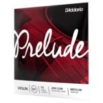 Juego de cuerdas para violín, serie Prelude de D’Addario, escala 1/2, tensión media, aptas para violines de 1/2 con una longitud de 11 1/2″ pulgadas (290 mm), núcleo de acero sólido, inalteradas por los cambios de temperatura y humedad, excelente respuesta del arco, sonido cálido y durable, paquete ecológico y resistente a la corrosión para conservar la frescura de las cuerdas.