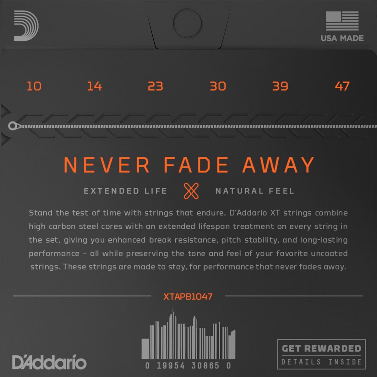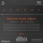 Encordadura para guitarra acústica, tensión extra ligera, recubiertas, afinación estándar, material de recubrimiento: Bronce fosforado, tratamiento de vida útil prolongada en cada cuerda, preserva el tono natural y la sensación de las cuerdas sin recubrimiento, alambre de acero con alto contenido de carbono y tecnologías Fusion Twist que brindan estabilidad de afinación y una resistencia sin igual a la rotura, se mantienen afinadas un 131% mejor que las cuerdas tradicionales, duran al menos 4 veces que las cuerdas tradicionales sin recubrimiento, empaque interno con cierre resellable para facilitar apertura y almacenamiento de cuerdas no utilizadas, calibres: .0100, .0140, .0230, .0300, .0390, .0470.