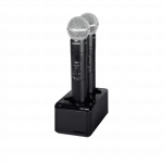 El cargador de dos bahías SBC203 admite dos baterías SB903 o transmisores compatibles. Se puede utilizar en cualquier lugar apropiado con espacio y ventilación adecuados.