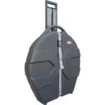 SKB ha añadido otro estuche rodante para proteger platillos de hasta 24″ pulgadas Roto moldeado con polietileno de alta densidad con un poste central soldado. Puede contener hasta 8 platillos y ha sido diseñado para ofrecer un transporte ergonómico con ruedas estilo patín y una manija plegable para jalarlo, por lo que es el transporte ideal para tus platillos.