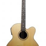 Guitarra electroacústica jumbo, tapa de abeto, aros, fondo y brazo de caoba, puente de sonokelin y diapasón de rosewood, resaque, mica, 20 trastes, maquinaria de acero die-cast, preamp activo KLT-34 con afinador digital, ecualizador de 4 bandas, volumen y fase, equipada con cuerdas D’Addario. Dimensiones del producto: 110 x 56 x 15 cm. Peso: 3.44 Kg.