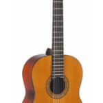 Guitarra acústica con cuerpo estilo clásico, cuerdas de nylon, sonido balanceado y articulado, calidad artesanal, tapa de abeto seleccionado, aros y fondo de catalpa, diapasón y puente de palo de rosa, brazo de caoba, terminado brillante, maquinaria de pearloid, hardware dorado.