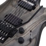 Guitarra eléctrica sólida de 6 cuerdas, cuerpo de fresno de pantano, tapa arqueada, construcción Set-Neck con Ultra Acceso, unión en negro, una capa, puente Floyd Rose 1500 Series, hardware negro satinado, maquinaria Grover, diapasón de ébano con radio compuesto de 12”-16”, brazo de maple/padauk multi capa con varillas de refuerzo de fibra de carbono en forma de C delgado, incrustaciones de triángulo de madre perla en los trastes 12 y 24, marcadores de puntos que brillan en la oscuridad, escala 25.5” (648 mm), espesor en el primer traste: .787” (20 mm) y en el traste 12: .866” (22 mm), 24 trastes X-Jumbo de acero inoxidable, cejuela Floyd Rose 1500 Series de 1.625” (41.3 mm) de ancho, alma ajustable de 2 vías con tuerca Allen de 5/32” (4 mm), controles: volumen, tono, intensidad, switch de 3 posiciones (pastilla), switch On/Off Sustainiac de 2 vías y switch Sustainiac de 3 vías (Mix-Harmonic fundamental), pastilla del puente: Schecter USA Apocalypse-VI™, pastilla del brazo: Sustainiac, compartimento de la batería: Batería de 9V, perillas: Hipshot O-Ring.
