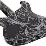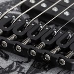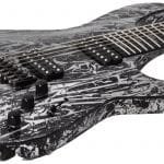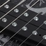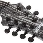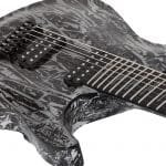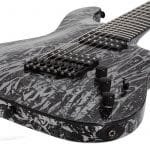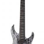 Guitarra eléctrica sólida de 7 cuerdas, cuerpo de caoba, hardware negro, tapa arqueada, construcción Set-Neck con ultra acceso, puente Hipshot Hardtail (.125) con String Thru Body, brazo C delgado de tres piezas de caoba con varillas de refuerzo de fibra de carbono, diapasón de ébano de 16” (406 mm) de radio, maquinaria Schecter Locking, incrustaciones de líneas, marcadores de puntos Luminlay que brillan en la oscuridad, escala: 25.5”- 27″ (648 mm – 685.8 mm), espesor en el primer traste: .787” (20 mm) y en el traste 12: .866” (22 mm), 24 trastes X-Jumbo de acero inoxidable, cejuela de grafito de 1.889” (48 mm) de ancho, alma ajustable de 23 vías con tuerca Allen de 5/32” (4 mm), controles: dos volúmenes y un tono (Push-Pull) con selector de 3 posiciones, pastilla del puente: Schecter USA Sonic Seducer™, pastilla del brazo: Schecter USA Sonic Seducer™, perillas de metal moleteado con tornillo de fijación.