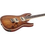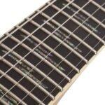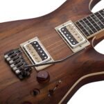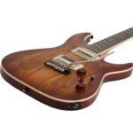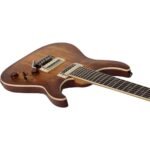 Guitarra eléctrica sólida de 6 cuerdas, cuerpo de caoba, tapa arqueada de maple spalted, unión de una capa de crema, puente Wilkinson WVS50IIK Tremolo, brazo tipo C de maple tostado y purpleheart con varias capas con varillas de refuerzo de fibra de carbono, construcción bolt-on, maquinaria Schecter Locking, diapasón de ébano de 14” pulgadas (355 mm) de radio, incrustaciones de líneas de abalone, escala: 25.5” (648 mm), espesor en el primer traste: .787” (20 mm) y al traste 12: .866” (22 mm), 24 trastes X-Jumbo, cejuela de Graph Tech XL Ivory Tusq de 1.653” (42 mm) de ancho, alma ajustable de 2 vías con tuerca Allen de 5/32” (4 mm), hardware negro y cromado, controles: volumen, switch de palanca Coil Split de 2 vías, tono y switch de 3 vías para pastilla, pastilla del puente: Schecter Diamond ’78 Special, pastilla del brazo: Schecter Diamond ’78, perillas Grip Tip Speed.