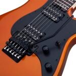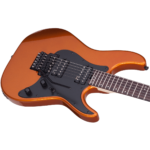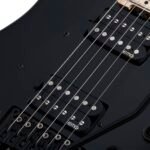 Guitarra eléctrica sólida, cuerpo de caoba, tapa plana, brazo C delgado de maple, diapasón de maple, incrustaciones puntos offset/reverse, escala: 25.5” (648 mm), 24 trastes x-jumbo, cejuela Floyd Rose Special de 1.625” (41.3 mm) de ancho, alma ajustable de 2 vías, pastilla del puente: EMG Retro Active Hot 70, pastilla del brazo: EMG Retro Active Hot 70, un volumen y un tono, selector de 3 posiciones, hardware negro, puente: Floyd Rose Special ‘Hot Rod’ Locking Tremolo (Exclusivo de Schecter), maquinaria Schecter, perillas de metal moleteado con tornillo de ajuste, construcción bolt-on.