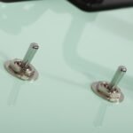 Perillas de metal moleteado con tornillo de ajuste.