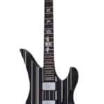 Guitarra eléctrica sólida, cuerpo de caoba, tapa plana a rayas, hardware negro, construcción Set-Neck con Ultra Access, puente Floyd Rose 1500 Series, maquinaria Grover Rotomatic 18:1, brazo C ultra delgado de 3 piezas de caoba con varillas de refuerzo de fibra de carbono, diapasón de ébano, incrustaciones de ‘Syn’ aperlado con Death Bat en el traste 12, marcadores de puntos que brillan en la oscuridad, escala 25.5” (648 mm), 24 trastes X-Jumbo, cejuela Floyd Rose 1500 Series de 1.625” (41.3 mm) de ancho, alma ajustable de 2 vías con tuerca Allen de 5/32” (4 mm), un volumen y un tono (Push-Pull), selector de 3 posiciones, pastilla del puente: Schecter USA Synyster Gates Signature Humbucker, pastilla del brazo: Schecter USA Synyster Gates Signature Humbucker, perillas de metal moleteado con tornillo de ajuste.