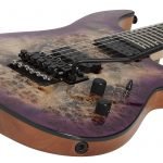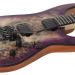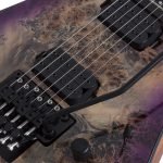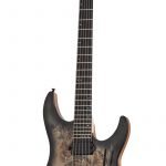 Guitarra eléctrica sólida, cuerpo de caoba, tapa burl, hardware negro, construcción bolt-on, unión: una capa negro, puente: Floyd Rose Special ‘Hot Rod’ Locking Tremolo (Schecter Exclusive), maquinaria Schecter, diapasón de Wenge, brazo C delgado de 3 piezas de maple con varillas de refuerzo de fibra de carbono, incrustaciones offset y puntos inversos, escala: 25.5” (648 mm), espesor en el primer traste: .748” (19 mm) y en el traste 12: .787” (20 mm), 24 trastes X-Jumbo, radio del diapasón: 14” (355 mm), cejuela Floyd Rose Special de 1.625” (41.3 mm) de ancho, alma ajustable de 2 vías con tuerca Allen de 5/32” (4 mm), controles: volumen (Push-Pull) / Tono y selector de 3 posiciones, pastilla del puente: Schecter Diamond Decimator, pastilla del brazo: Schecter Diamond Decimator, perillas de metal moleteado con tornillo de ajuste.