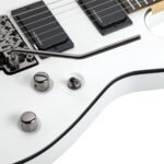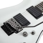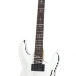 Guitarra eléctrica sólida, cuerpo de tilo, tapa arqueada, unión aged crème 1 capa, construcción bolt-on, brazo C delgado de maple, diapasón de palo de rosa, incrustaciones de cruces góticas en gris aperlado, escala: 25.5” (648 mm), 24 trastes x-jumbo, cejuela Floyd Rose Special de 1.625” (41.3 mm) de ancho, alma ajustable de 2 vías con tuerca Allen de 5/32” (4 mm), pastilla del puente: Duncan Designed HB-105B, pastilla del brazo: Duncan Designed HB-105N, un volumen y un tono, selector de 3 posiciones, hardware cromado negro, puente Floyd Rose Special, maquinaria Schecter, perillas de metal moleteado con tornillo de ajuste.