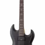 Guitarra eléctrica sólida, cuerpo de tilo, tapa plana con borde biselado, brazo C delgado de maple, diapasón de palo de rosa, incrustaciones de cruces góticas en gris aperlado, escala: 24.75” (628 mm), 24 trastes x-jumbo, cejuela de Graph Tech XL Black Tusq de 1.653” (42 mm) de ancho, alma de 2 vías ajustable con tuerca Allen de 5/32” (4 mm), pastilla del puente: Duncan Designed HB-105B, pastilla del brazo: Duncan Designed HB-105N, un volumen y un tono, selector de 3 posiciones, compartimento de la batería: 9V, hardware cromado, puente Tune-O-Matic con string thru body, maquinaria Schecter, perillas de metal moleteado con tornillo de ajuste, construcción bolt-on.